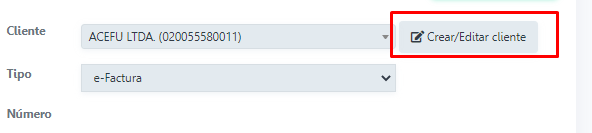 Una vez creado el cabezal del comprobante se puede usar este enlace para editar el nombre del cliente en forma rápida, luego de la edición el sistema vuelve a la factura actual en forma automática.